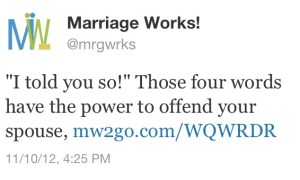 Those 89 characters stirred a thought: what do I do that chafes my spouse. What are the words/phrases that she hates? What type of mannerisms set her off? Are there habits I do that causes undo tension and anger?
